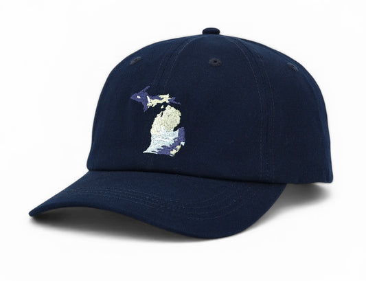 PRE-ORDER: UP NORTH - POP ART PLACES - 100% Cotton Baseball Hat - Michigan Map - Deep Harbor Blue