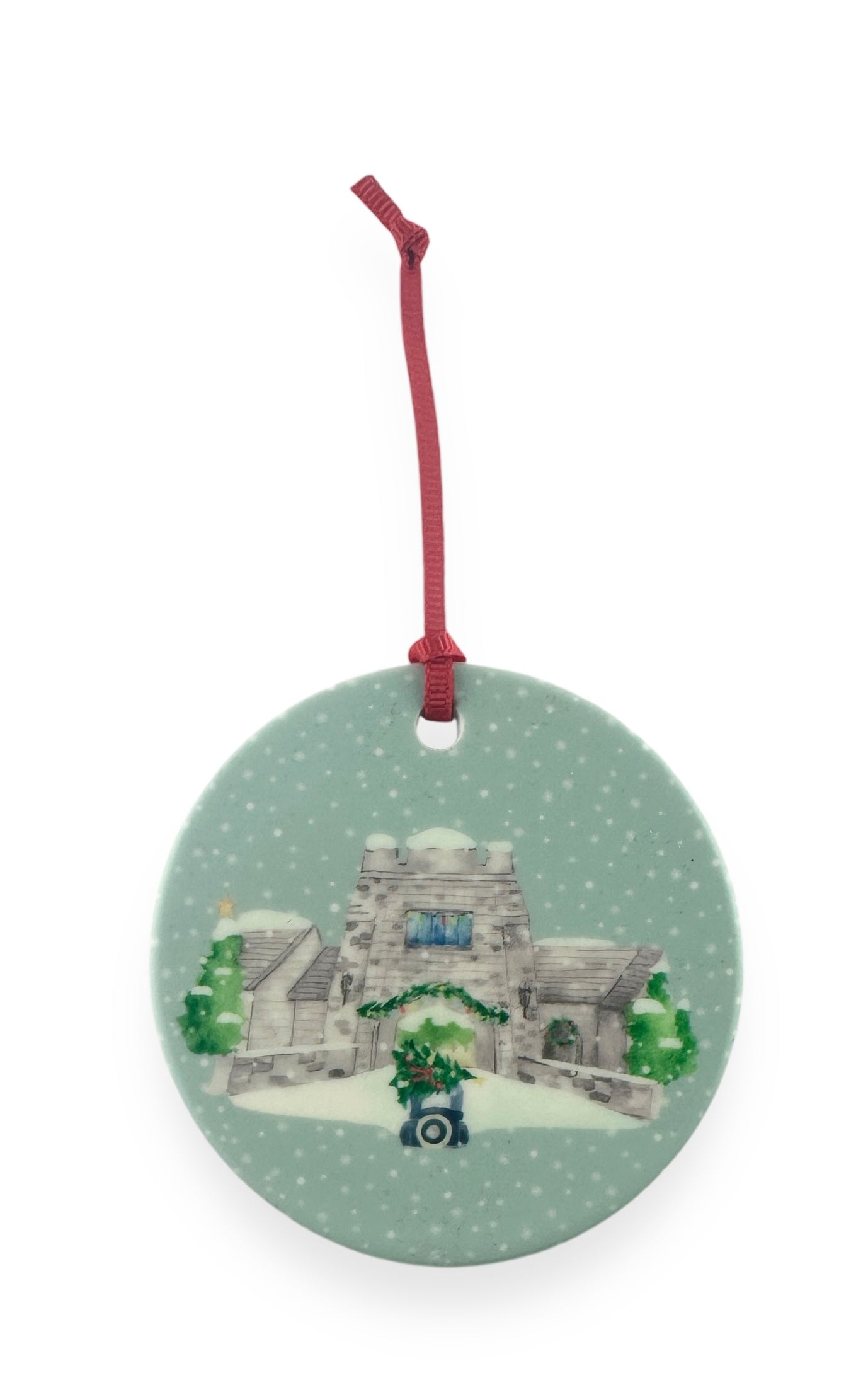 Take a holiday stroll down memory lane with the GROSSE POINTE Christmas Ornament. Made of 3" ceramic, this ornament features the iconic Ford Estate on Lake St. Clair, and of course, a classic Model-T. Complete with a red ribbon, it's the perfect addition to any tree.